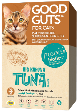 Good Guts For Cats is a daily probiotic supplement for your Meowser! It supports healthy immune function and gut regularity with 3 billion CFUs and creates a tranquil tummy through your kitty's natural elimination process.